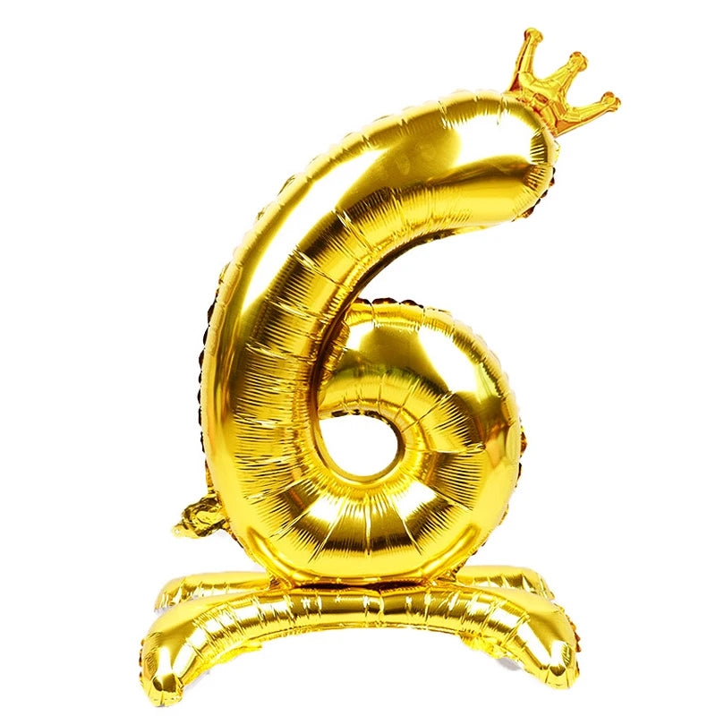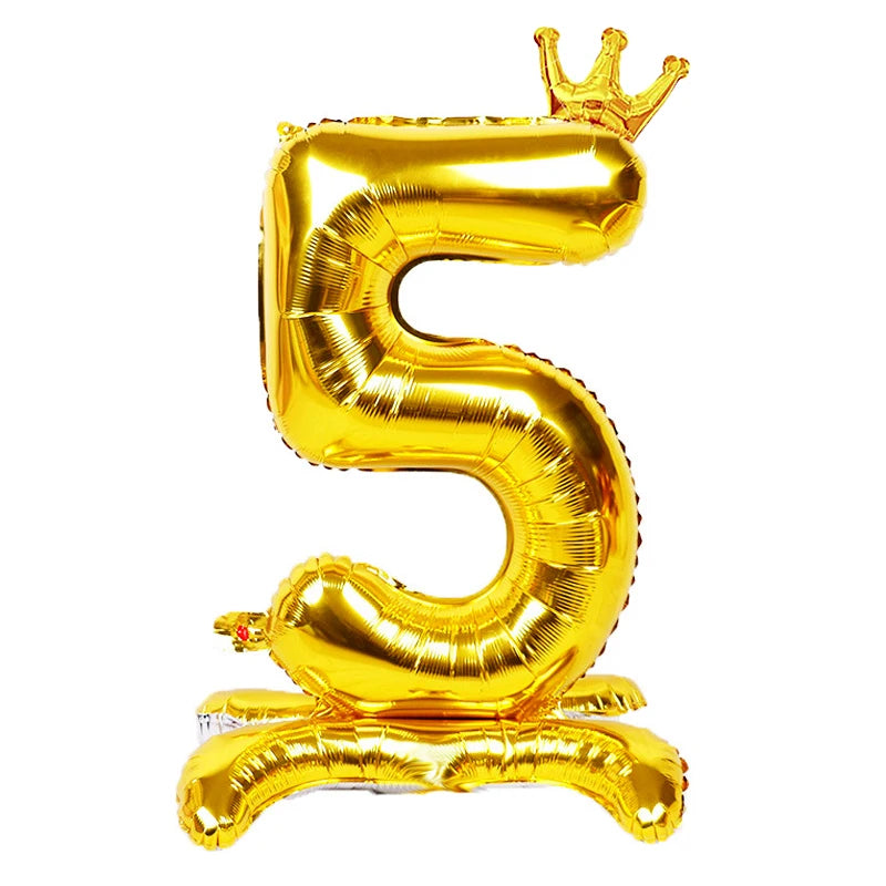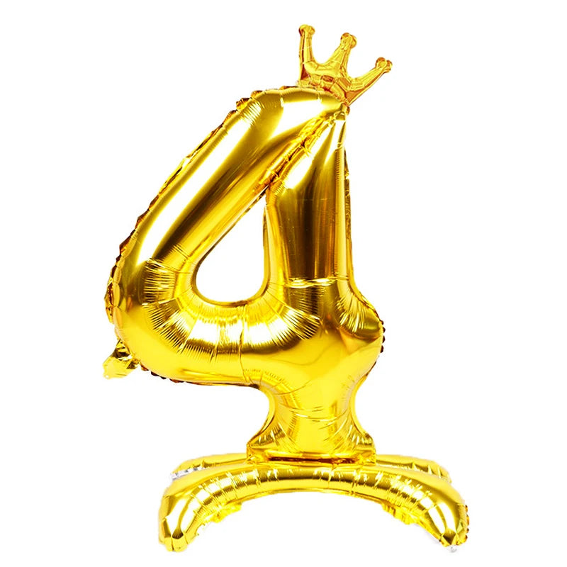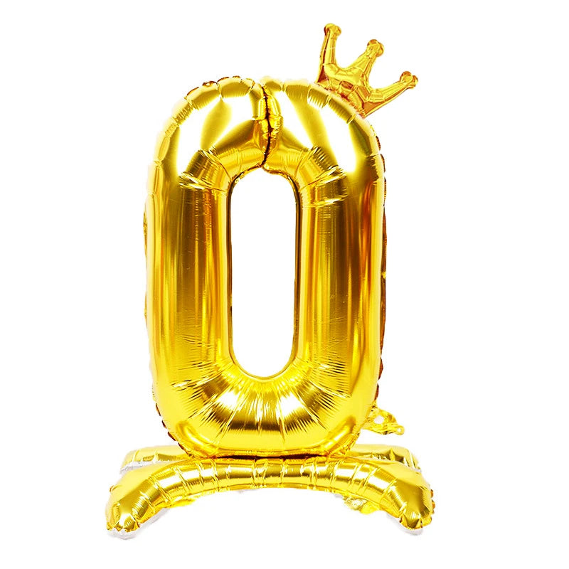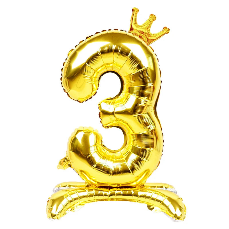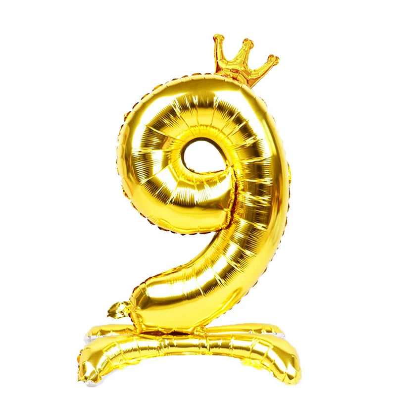 32 Inch Gold Number Stand Foil Balloons with Crown Digital Figures Globos 0-9 Birthday Party