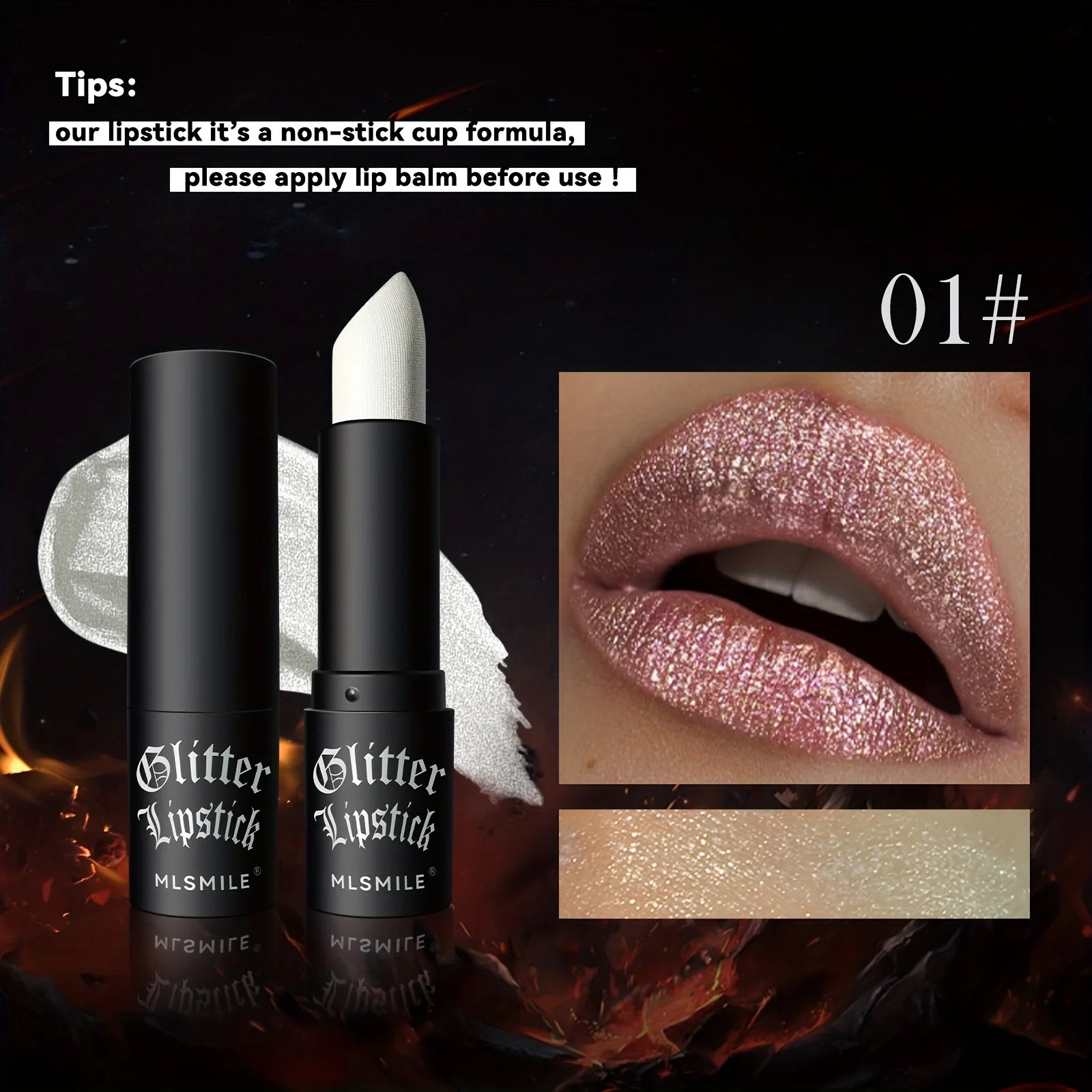 7 Colors Glitter Lipstick Hydrating Sparkling Shine Lip Color Nonstick Highly Pigmented Formula Gives Metallic Finish Lip Makeup