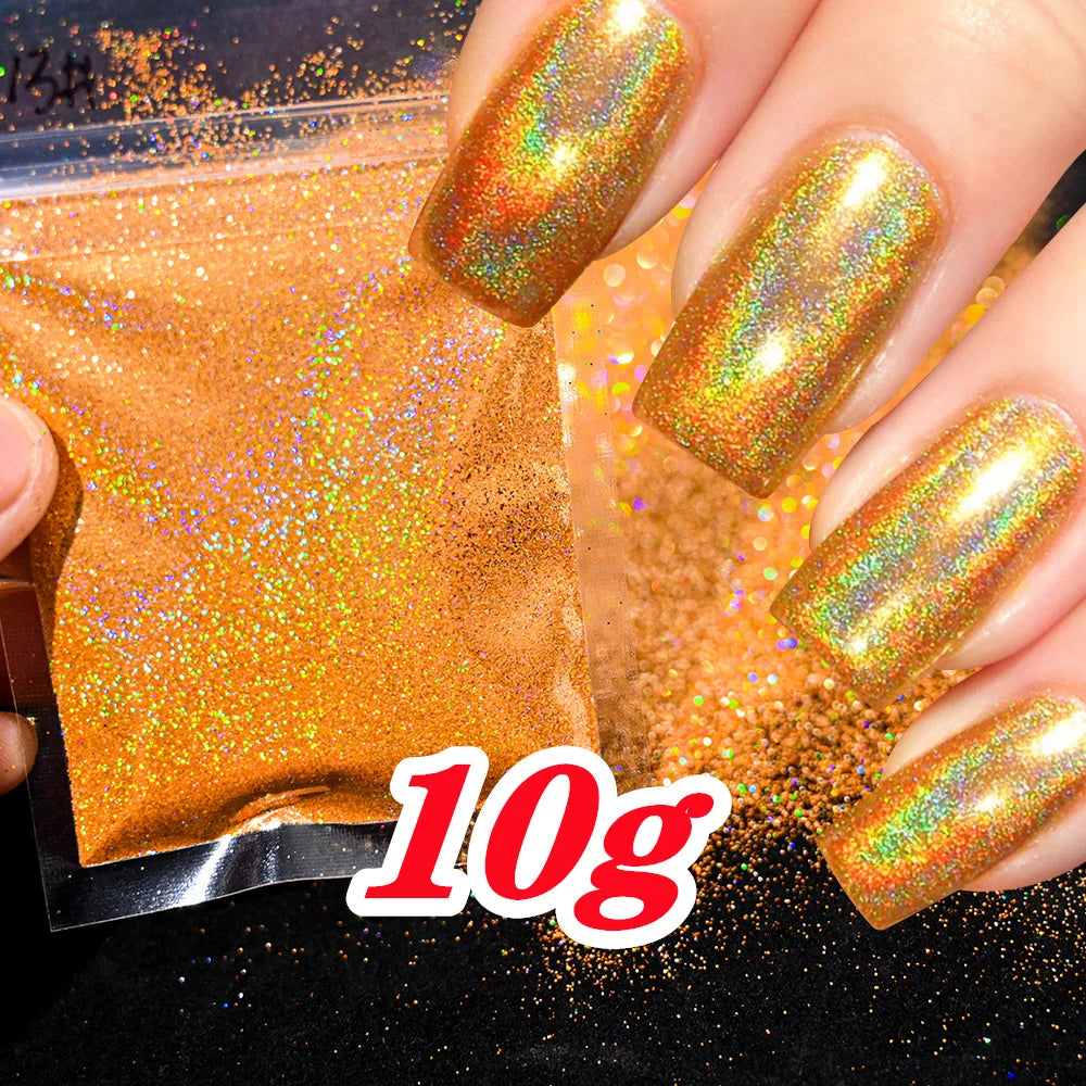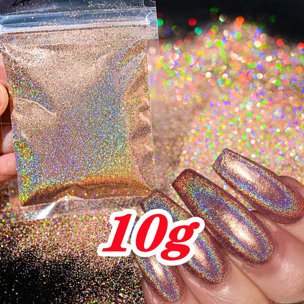 Laser Holographic Rainbow Nail Glitter 0.2MM Sparkly Nails Glitter Powder 10G/5G Dazzling Glitter Dust DIY Nail Art Decoration